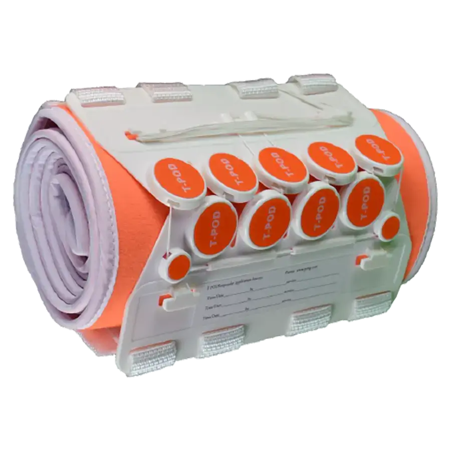 Das T-Pod Beckenstabilisierungssystem ist speziell dazu ausgelegt eine symmetrische, umlaufende Kompression zu erzeugen und so eine umlaufende Kompression und Stabilisierung des Beckenrings zu gewährleisten. Das Arrow T-POD Beckenstabilisierungssystem hat eine Einheitsgröße und ist somit eine praktische Option für Ersteinsatzkräfte. Die Kompression kann sofort an den Patienten angepasst, und das System für eine perfekte Passform einfach zugeschnitten werden. Bei adipösen Patienten können auch mehrere T-POD Responder miteinander kombiniert werden. Der T-POD Responder hat ein innovatives Schnürsystem, das fast über die gesamte Breite des Gurtes reicht. Er bietet eine Kompression, die gleichmäßig auf beide Seiten des Schnürsystems und über die Breite des Gurtes verteilt ist. Das Schnürsystem ermöglicht zudem eine stufenlose Einstellung, wodurch das Produkt flexibel angepasst werden kann. Das Produkt reduziert das Risiko von inneren Blutungen im Zusammenhang mit Verletzungen des Beckenrings. Der T-POD Responder kann einfach und schnell von einer einzigen medizinischen Rettungskraft vor Ort angelegt werden. Mit einer Dicke von 2,5 mm ist der T-POD Responder leicht, klein und kompakt und passt in Ihre Notfalltasche. Der T-POD Responder besteht aus 100 % Polyurethan-Material, das dünner, atmungsaktiv, langlebig ist und den Feuchtigkeitstransport ermöglicht. Darüber hinaus franst das Material auch beim Zuschneiden nicht aus. Der T-POD Responder muss für radiologische Untersuchungen nicht abgenommen und dann erneut angelegt werden. Der T-POD Responder kommt ohne Metallteile aus und kann während MRT-, Röntgen- und CT-Aufnahmen angelegt bleiben und den Beckenbereich des Patienten stabil halten.