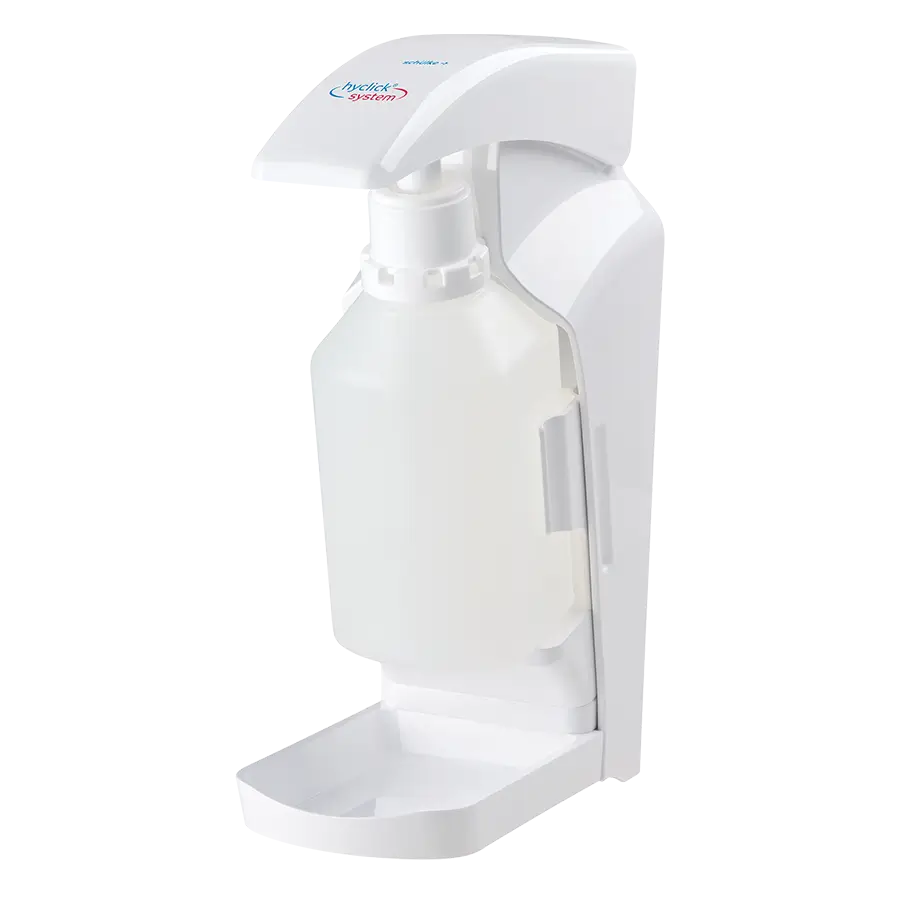 Das hyclick® System vario ist ein innovatives Spendersystem zur sicheren und einfachen Anwendung von Händedesinfektionsmitteln oder Waschlotionen mit integrierter Pumpe. Es wurde speziell entwickelt, um höchste Hygieneanforderungen im Gesundheitswesen und in professionellen Einrichtungen zu erfüllen und den Arbeitsalltag effizienter zu gestalten. Das System kombiniert ein benutzerfreundliches Design mit maximalem Schutz vor Kontaminationen.
