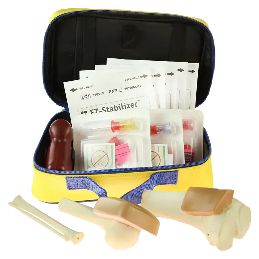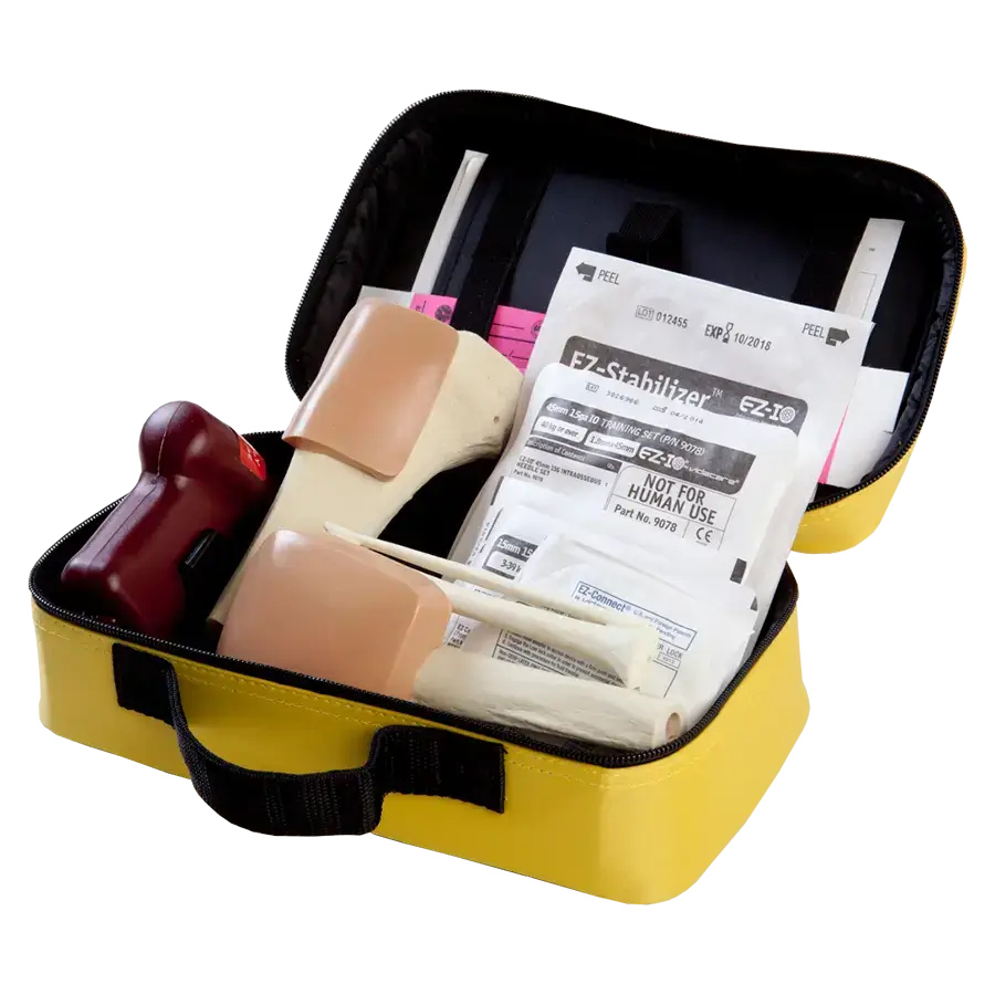 Das Arrow ® EZ-IO ® System-Trainingskit enthält das EZ-IO ® Soft-Sided Vascular Access Pack (Menge = 1), den EZ-IO ® Training Power Driver (Menge = 1) und das EZ-IO ® 45-mm-Trainingsnadelset (Menge=1), EZ-IO® 25 mm Trainingsnadelset (Menge=1), EZ-IO® 15 mm Trainingsnadelset (Menge=1), EZ-IO® EZ -Stabilizer® Verband (Menge=5) , Tibia/Fibula-Trainingsknochen für Kleinkinder (Menge=1), Proximaler Tibia-Trainingsknochen für Erwachsene (Menge=1) und Proximaler Humerus-Trainingsknochen für Erwachsene (Menge=1).