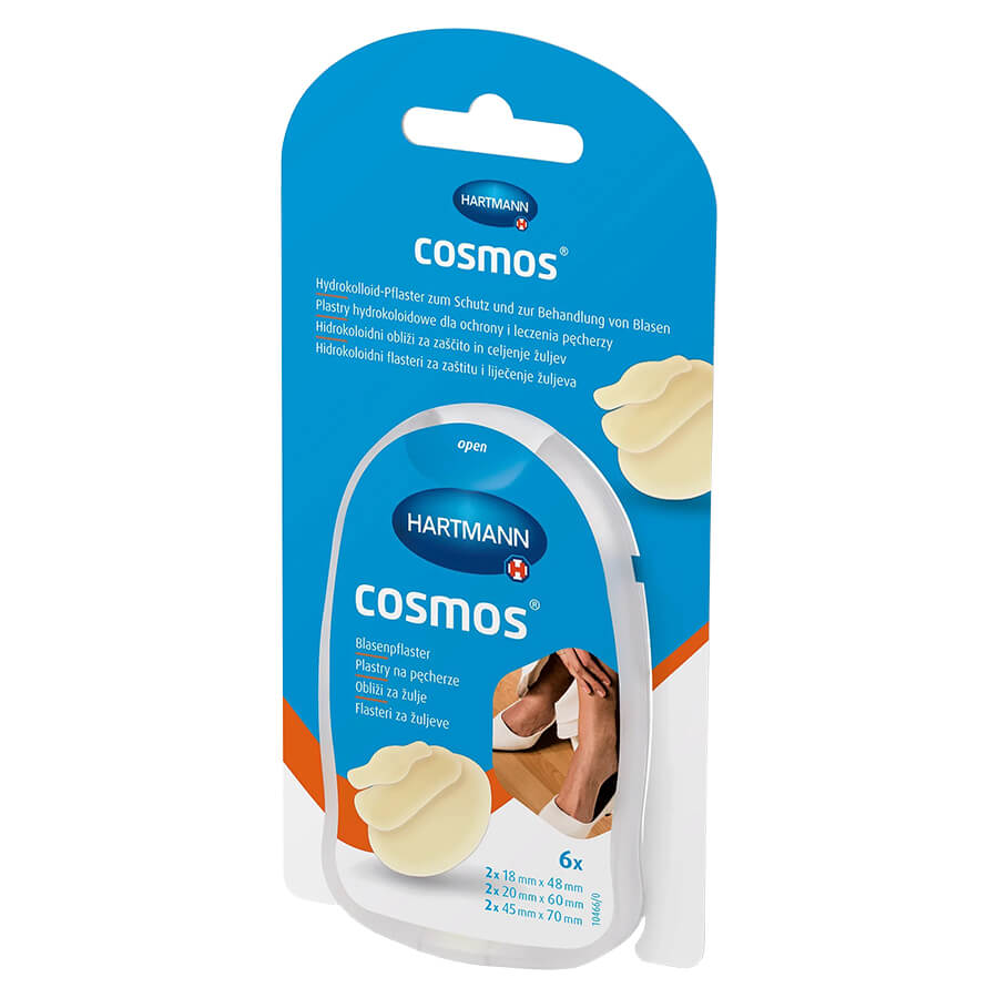 Cosmos® Blasenpflaster nimmt dank der vollflächigen Hydrokolloidbeschichtung Blasenflüssigkeit auf und bildet ein gelartiges Kissen über der Blase. Dadurch wirkt es druckentlastend und schmerzlindernd. Cosmos® Blasenpflaster sind bequem zu tragen und haften vollflächig auf der betroffenen Körperstelle. Das Spezialpflaster fördert die Heilung von Blasen an Füßen, Zehen und Fingern.