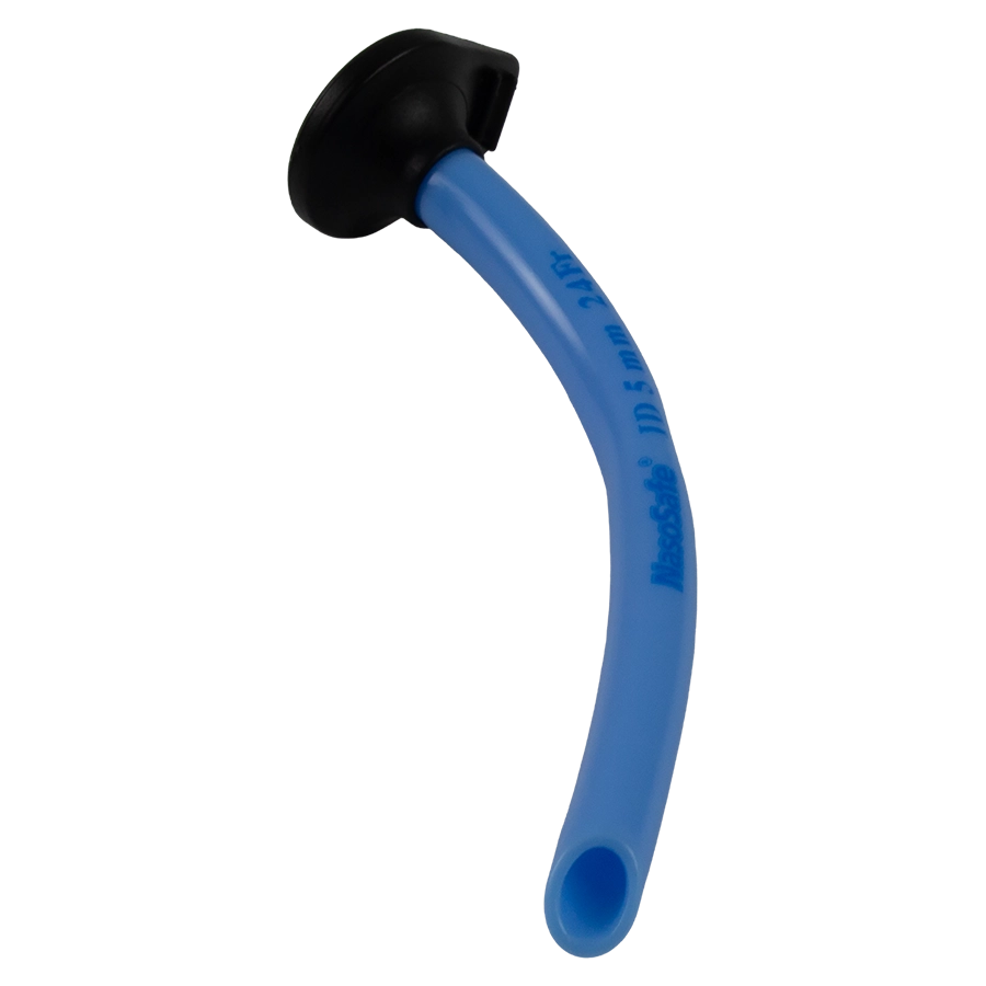 NasoSafe als nasopharyngeale Atemwegshilfe verfügen über einen patentierten drehbaren Sicherheitsgriff, der das Risiko, dass der Nasopharynx-Tubus in den Nasengang zu tief gezogen wird, reduziert und gleichzeitig maximalen Komfort für den Patienten bietet.