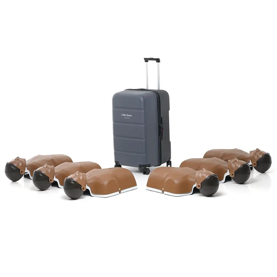 Mit 6 stapelbaren Little Anne Trainingspuppen, integrierter QCPR-Feedback-Technologie und praktischem Rollkoffer ermöglicht dieses Komplettset ein effizientes, hygienisches und realistisches Training der Herz-Lungen-Wiederbelebung.