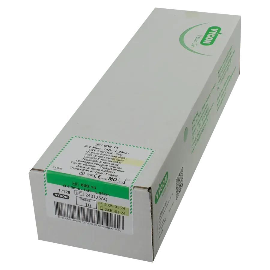 Bei dem vorliegenden Produkt handelt es sich um einen Trokarkatheter mit Fixationsplatte für die Erwachsenenmedizin. Der 28 cm lange Trokarkatheter ist auf einen Metalltrokar zur stabileren Führung aufgesetzt. Das Produkt ist in den Größen von 14-30 Fr verfügbar. Der Katheter ist transparent und knickfest, wodurch er sehr widerstandsfähig ist. Weitere Vorteile sind die Röntgenkontrastfähigkeit und der stufenlose Übergang vom Trokar zum Katheter. Das Produkt ist distal konisch abgerundet, hat zwei laterale Öffnungen und ist mit Markierungen bei 5, 10 und 15 cm versehen.