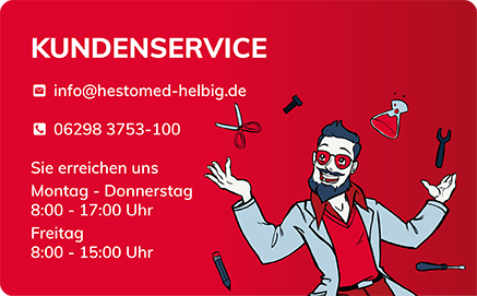 Häufig gestellte FragenWir von der hestomed & helbig Medizintechnik GmbH & Co. KG sind Ihr Partner, wenn es um Produkte in der Notfallmedizin und der Ersten Hilfe geht. Mit rund 6.000 Artikeln bestehend aus medizinischer Ausrüstung, Geräten, Ausbildungs- und Verbrauchsmaterialien beliefern wir ca. 7.000 Kunden aus Hilfsorganisationen, Behörden, Kliniken und Ärzten. Unser Ziel ist es, dass Sie als unsere Kunden exzellenten Service zu hochwertigen Produkten und Dienstleistungen erhalten. Und dies stets zu fairen Preisen und einem Mehrwert für Sie.
